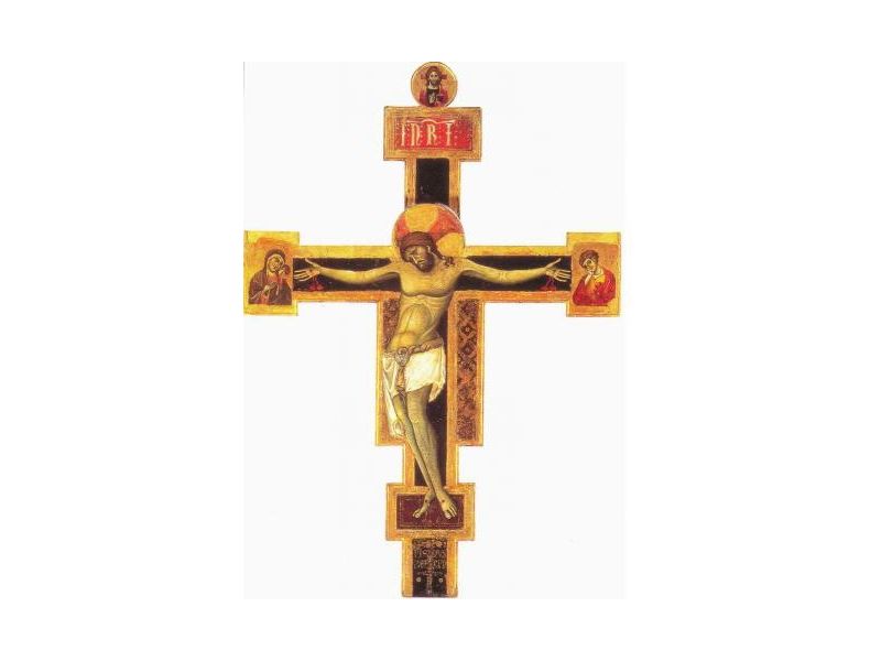 Croix Giunta Pisano di Pisa h. 71cm avec cadre creusée, aurèole, clipeus, cales, enduite Stocker: 0 - COD. 71Y2CAP
