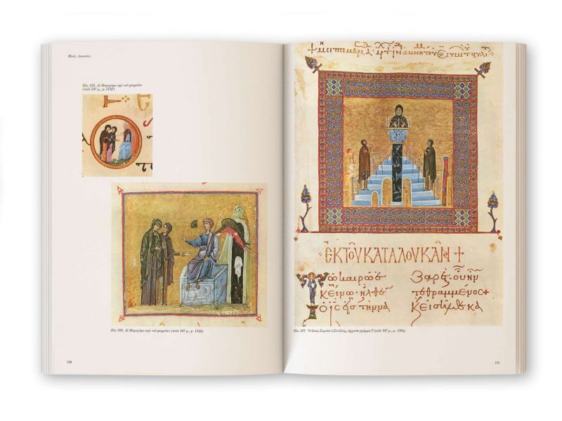 Con ricche illustrazioni a colori, presenta i capolavori dell'arte bizantina (miniature, titoli ed epiteti) dai manoscritti illustrati dei monasteri del Monte Athos. Nelle pagine di quest'opera (in quattro volumi: A-B-C-D) vengono pubblicate e descritte per la prima volta a livello internazionale le miniature a colori dei manoscritti bizantini, esempi davvero impareggiabili di arte bizantina e una delle espressioni più estetiche della cultura bizantina e della tradizione greca moderna. L'alta qualità artistica delle miniature unita all'ottima stampa a colori, la rilegatura artistica di alta qualità, fanno di edizione ad una vera e propria opera d'arte, di valore collezionistico, preziosa non solo per studiosi e scienziati ma anche per tutti estimatori della cultura bizantina.
