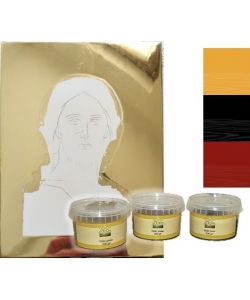 Bolus en poudre, prêt, avec colle de lapin, rouge-janue-noir