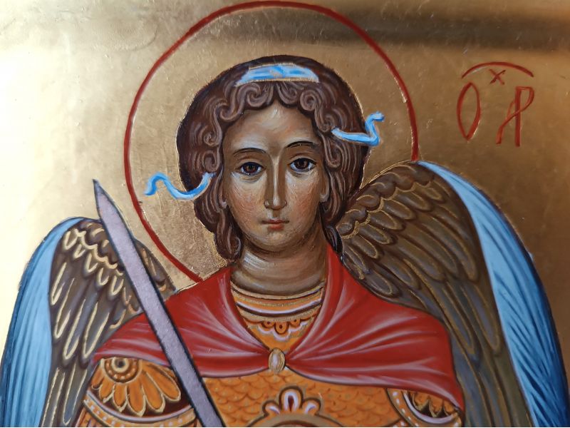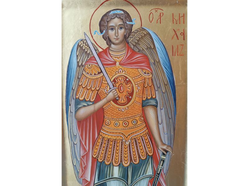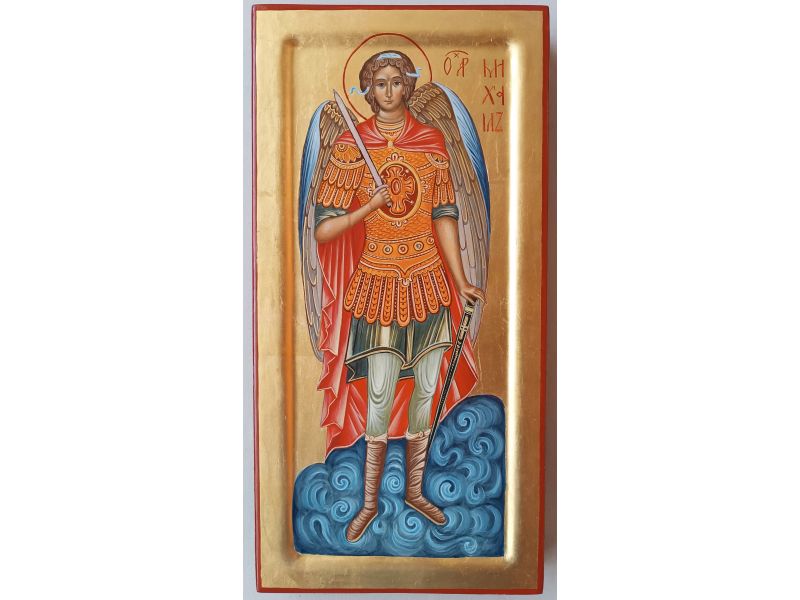 Icona Arcangelo Michele, 21x42 cm, con culla