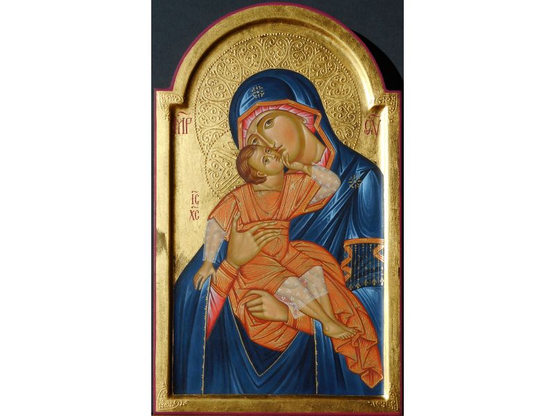 Icona Madre del dolce abbraccio 21x35 cm con arco