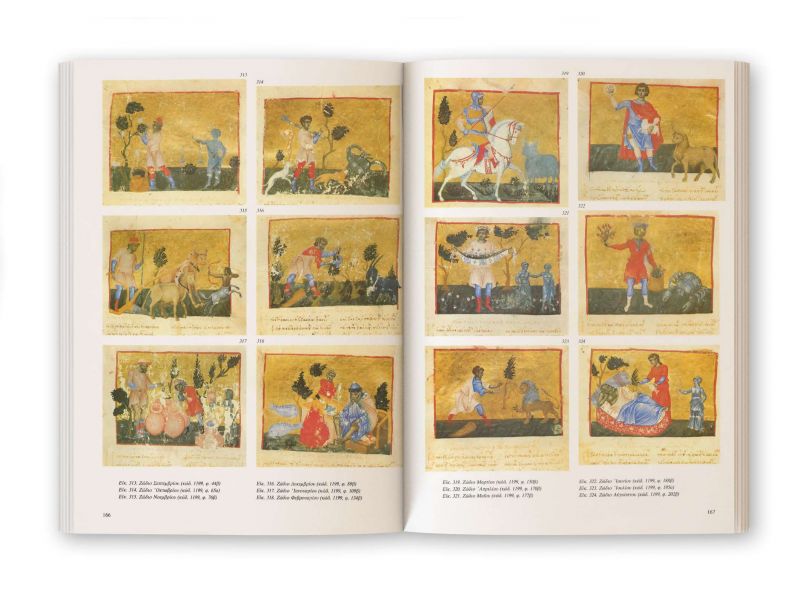 Con ricche illustrazioni a colori, presenta i capolavori dell'arte bizantina (miniature, titoli ed epiteti) dai manoscritti illustrati dei monasteri del Monte Athos. Nelle pagine di quest'opera (in quattro volumi: A-B-C-D) vengono pubblicate e descritte per la prima volta a livello internazionale le miniature a colori dei manoscritti bizantini, esempi davvero impareggiabili di arte bizantina e una delle espressioni più estetiche della cultura bizantina e della tradizione greca moderna. L'alta qualità artistica delle miniature unita all'ottima stampa a colori, la rilegatura artistica di alta qualità, fanno di edizione ad una vera e propria opera d'arte, di valore collezionistico, preziosa non solo per studiosi e scienziati ma anche per tutti estimatori della cultura bizantina.