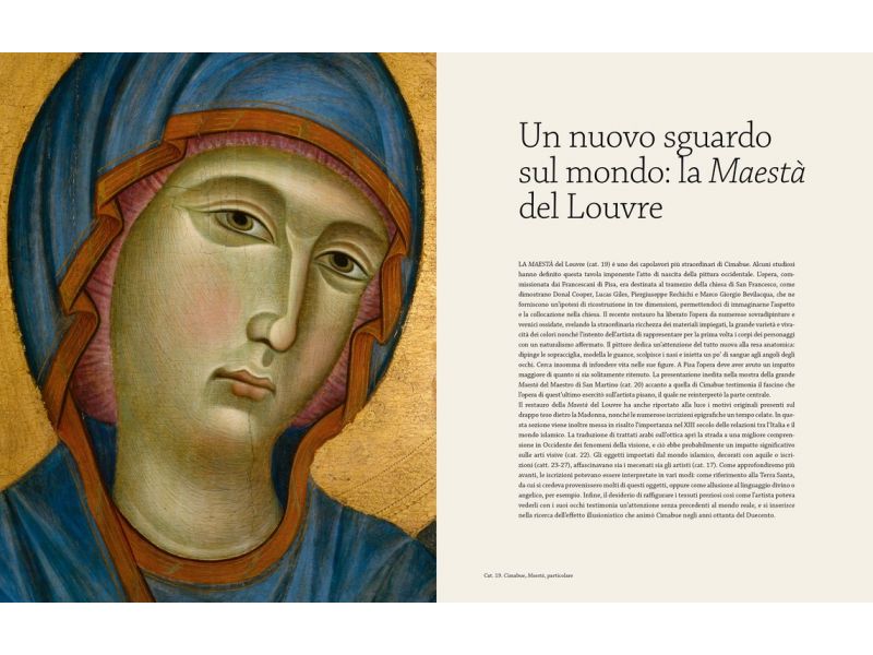 Artista misterioso, che da sette secoli affascina poeti, pittori, collezionisti e storici dell’arte, Cimabue ha rinnovato profondamente la pittura italiana alla fine del XIII secolo. Aprendo la strada alle ricerche degli artisti del Rinascimento, fu uno dei primi a rappresentare il mondo, gli oggetti e i corpi secondo natura. Nella sua arte, la rinomata tradizione bizantina cede il passo a una pittura d’invenzione che intende suggerire la tridimensionalità degli spazi e i volumi dei corpi con sottili sfumature, caratterizzando i suoi personaggi con gesti naturali ed emozioni umane. La recente acquisizione da parte del museo del Louvre del Cristo deriso, il suo restauro e quello della grande Maestà offrono l’occasione di approfondire le conoscenze su un pittore tanto affascinante quanto centrale nella storia dell’arte occidentale. Il volume, che include testi inediti dei più grandi esperti di pittura italiana del Duecento, colloca Cimabue nel contesto del fermento artistico, culturale, scientifico, spirituale e filosofico che contraddistingue l’Italia del XIII secolo, rivelando tutta l’originalità della sua arte. Riuniti per la prima volta e presentati accanto a opere di Giunta Pisano, Duccio e Giotto, ma anche a icone bizantine e oggetti preziosi provenienti dal Mediterraneo orientale che hanno ispirato l’artista, i suoi dipinti, maestosi, vivaci e colorati, appaiono sotto una nuova luce.