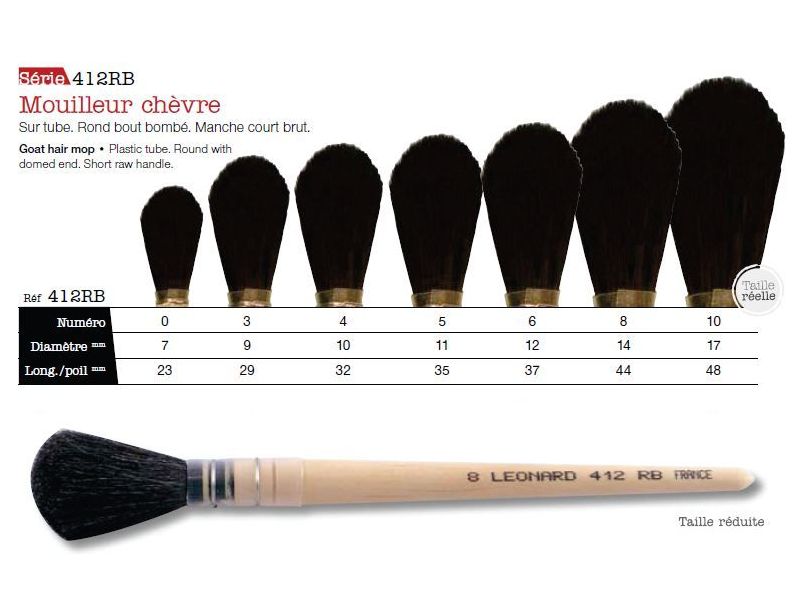 LEONARD Pennello tondo bombasino, pelo di capra tibetana, serie 412RB, num. 0 Giacenza: 4 - COD. P412RB0